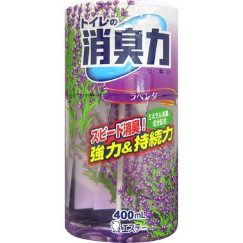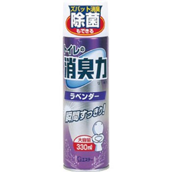 特長 / カテキン配合で、トイレの気になるニオイを強力に消臭します。ワイド噴射により、1回1秒のスプレーで瞬時に消臭します。大容量(330mL)なので1回1秒のスプレーで約250回使用できます。天然消臭成分配合なので、薬剤臭がありません。除菌剤配合なのでトイレ内を清潔に保ちます。